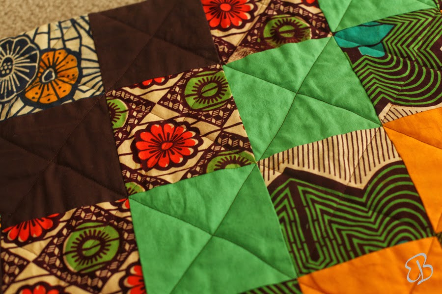 This quilt was really special to me and hopefully to the little girl who received it. The patterned fabric used was actually material that I had purchased in Gambia,West Africa eight years ago. I had kept it, but really didn't know why until now. One of the girls in our community group grew up in Senegal, which if you're not familiar with African geography, neighbors Gambia. When I went to her house for the first time, I saw that she had a lot of African elements in her decor. From the photographs on her wall to the fabric used for her accent pillows, you can see Africa was and still is an important part of her life.